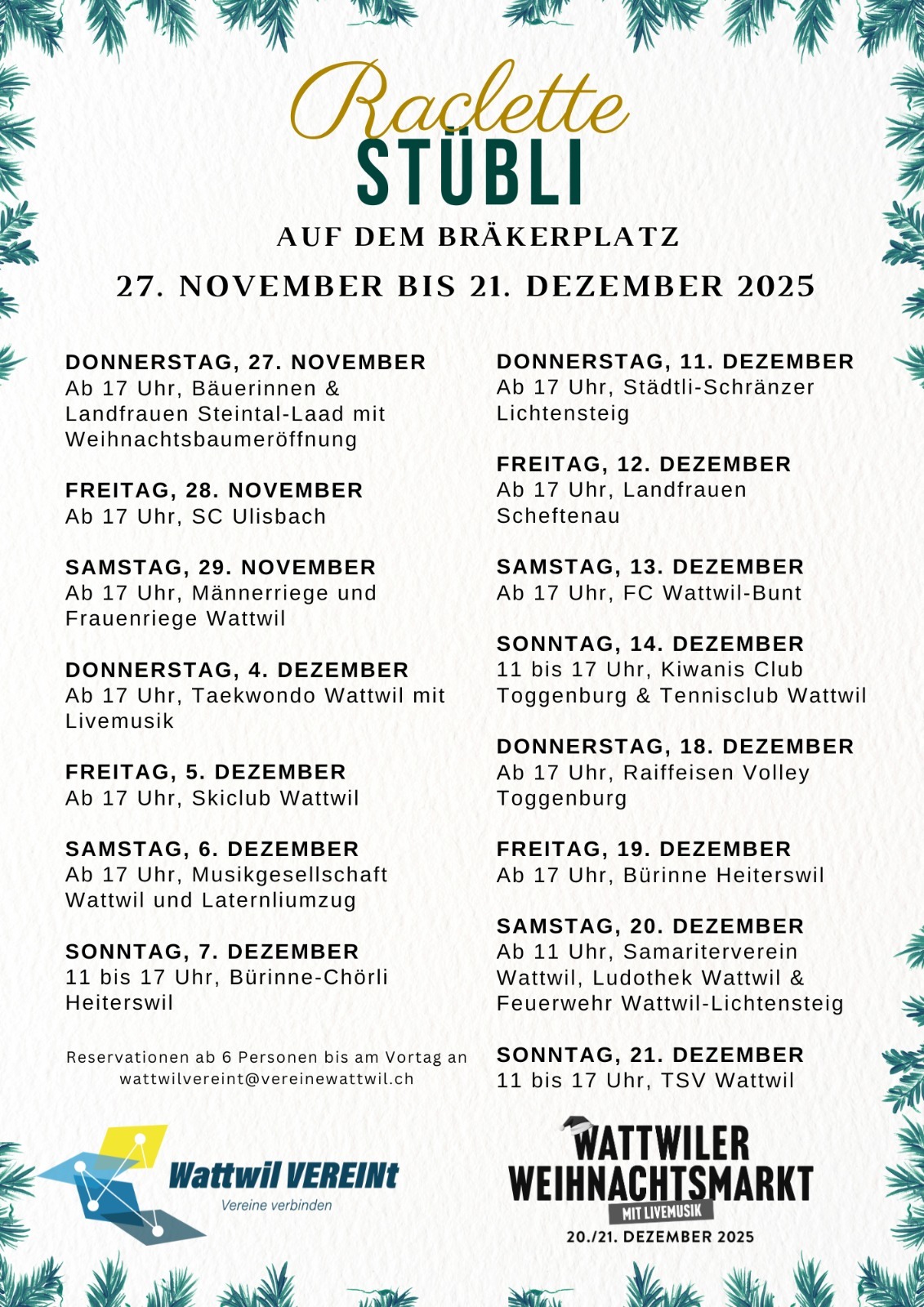 WATTWILER WEIHNACHTSMARKT: JETZT ANMELDEN MIT 10% FRÜHBUCHERRABATT